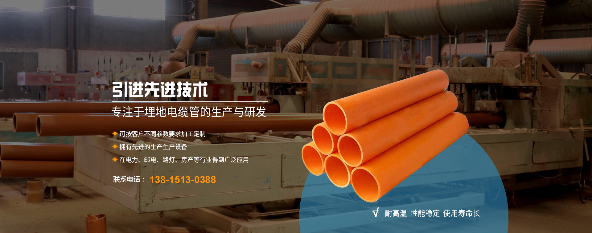 無錫邁力塑業(yè)科技有限公司地處長江三角洲蘇錫常經濟發(fā)達區(qū),坐落于江南名鎮(zhèn)--華士鎮(zhèn),緊鄰天下第一村“中國華西村”,緊靠沿江高速華西道口,距上海130公里、南京150公里,地理位置優(yōu)越,交通十分便捷。 本廠創(chuàng)辦于2010年,全廠職工總數(shù)為42名,工程師技術人員5名,擁有國內先進的錐形雙螺桿、單螺桿擠出生產線9條,是專業(yè)生產PE頂管、PVC-U埋地式普通電力電纜管套、PVC-C高壓電纜套管、MPP電纜套管等管材、管件、BWFRP電纜管拉擠纏繞管。 本廠研制生產的埋地電力通訊電...